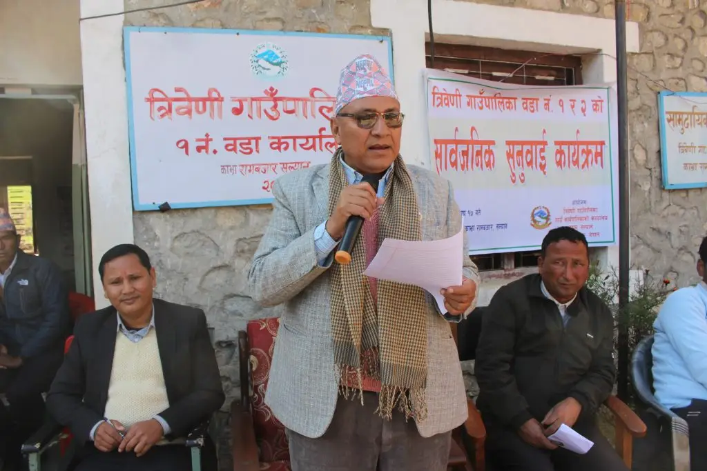 त्रिबेणी गाउँपालिकाको वडा नं. १ र २ को सार्वजनिक सुनुवाई कार्यक्रम सम्पन्न
