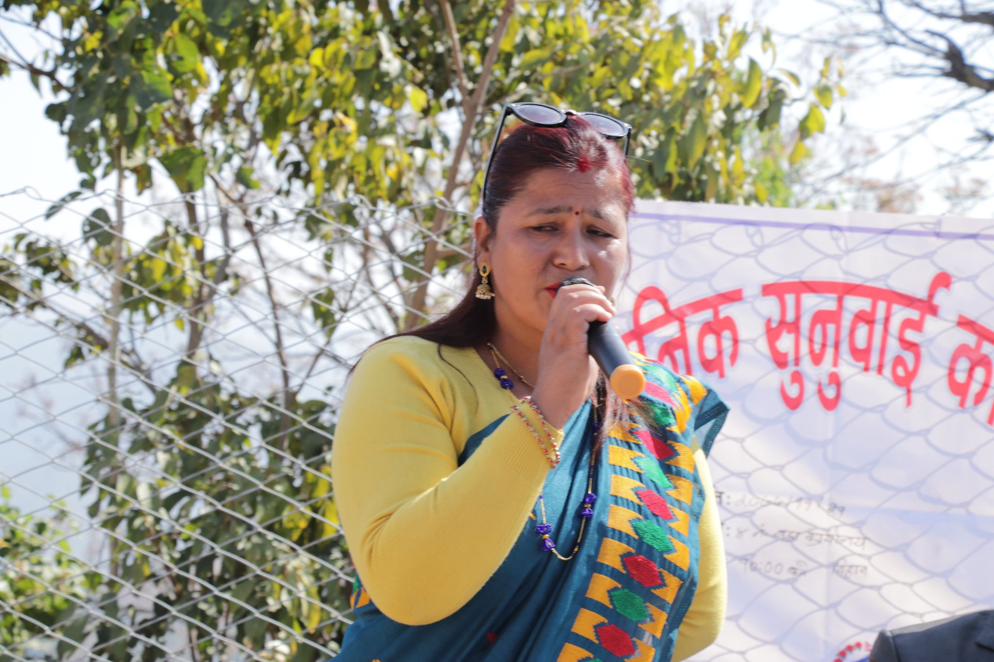कार्यक्रममा जवाफदेही वक्ताको रुपमा योजना शाखाबाट पहलमान वलि, प्राविधिक शाखाबाट ईन्जिनियर शिबराज गोसाई, शिक्षा शाखा प्रमुख गणेश प्रसाद आचार्य, कृषि शाखाबाट अमरसिंह बबाल, पशु शाखा प्रमुख बसन्त रावत, स्वास्थ्य शाखा प्रमुख प्रभात कुमार श्रेष्ठ, त्रिबेणी गाउँपालिकाका वडा नं. ६ का अध्यक्ष मानबहादुर वलि, गाउँकार्यपालिका सदस्यहरु, वडा सदस्यहरु, शिक्षक लगायत स्थानीयहरुको सहभागिता रहेको थियो ।