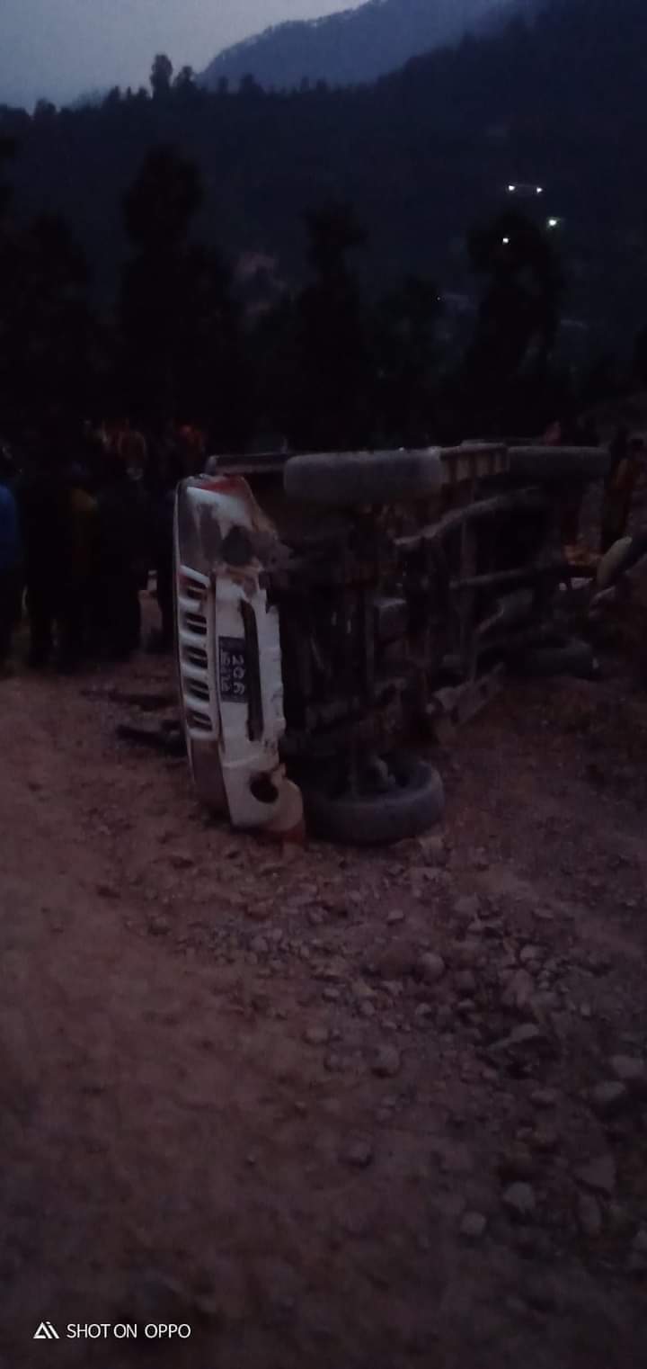 जीप उकालाेमा चढ्न नसकेर सडकमै पल्टिएकाे थियाे । चालकलाइ प्रहरीले नियन्त्रणमा लिएकाे जनाएकाे ।
