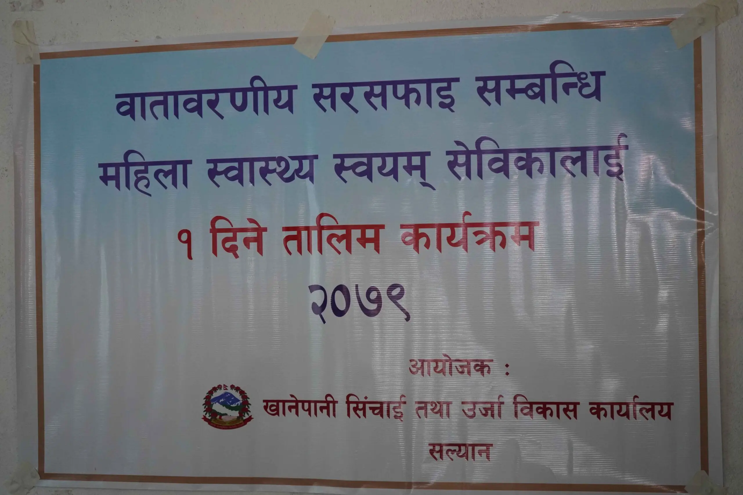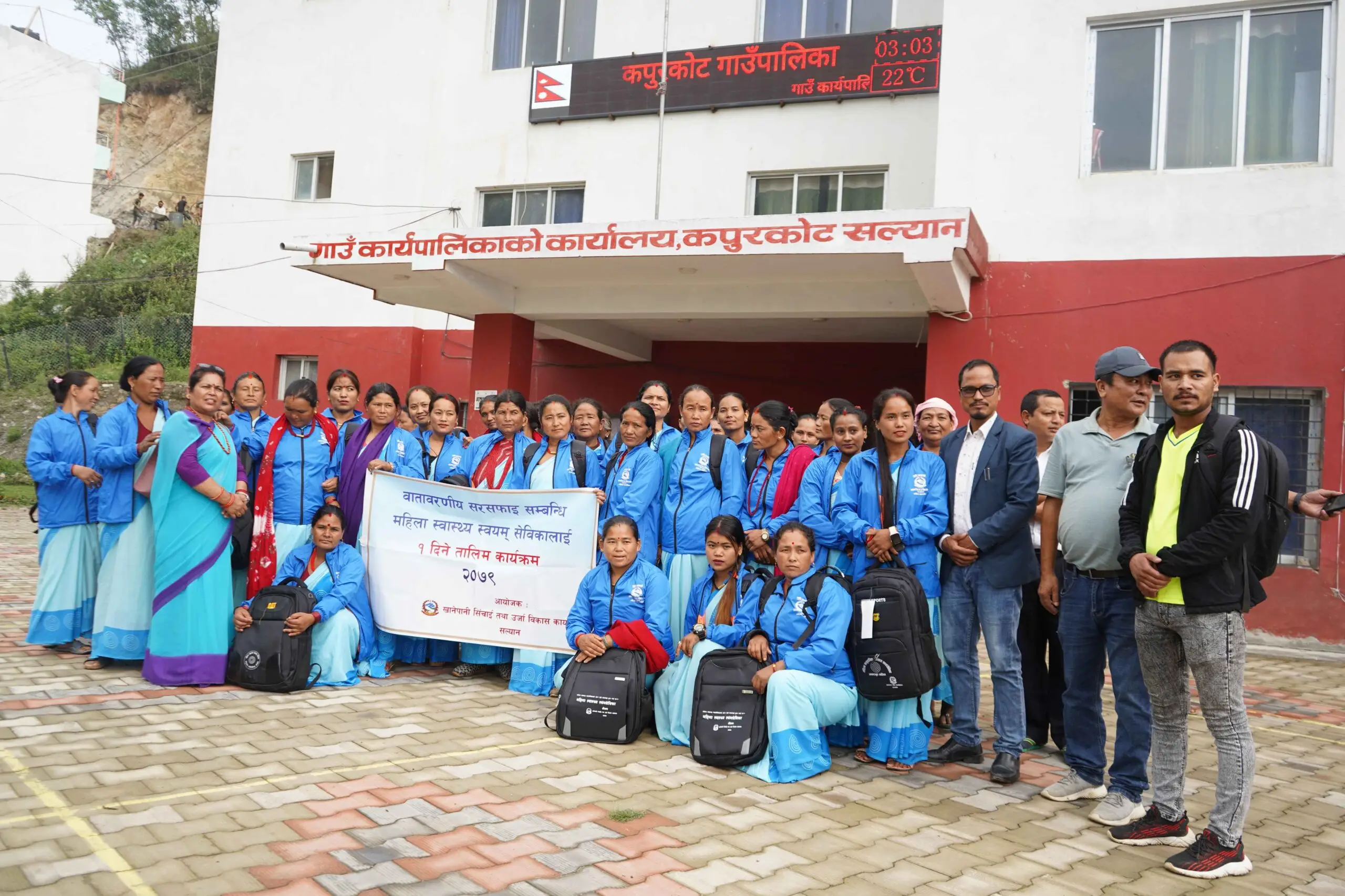 खानेपानी सिचाई उर्जा विकास कार्यालय सल्यानको आयोजनामा कपुरकोट गाउँपालिकामा वातावरणीय स्वास्थ्य सरसफाई सम्बन्धी १ दिने तालिम सम्पन्न भएको छ । खानेपानी सिचाई उर्जा विकास कार्यालय सल्यानकी सम्झना केसीको अध्यक्षतामा सुरु भएको कार्यक्रममा कपुरकोट गाउँपालिकाका अध्यक्ष दुर्गा पुन प्रमुख अतिथि रहनु भएको थियो । गाउँपालिका उपाध्यक्ष प्रकाश भण्डारी, स्वास्थ्य शाखा प्रमुख अरुण दाहाल लगायत को सहभागीता रहेको थियो । उक्त कार्यक्रममा ३७ जना महिला स्वास्थ्य स्वेविकालाई झोला, ज्याकेट, कपि र यातायात खर्च १ हजार सहित सम्मान गरिएको थियो ।