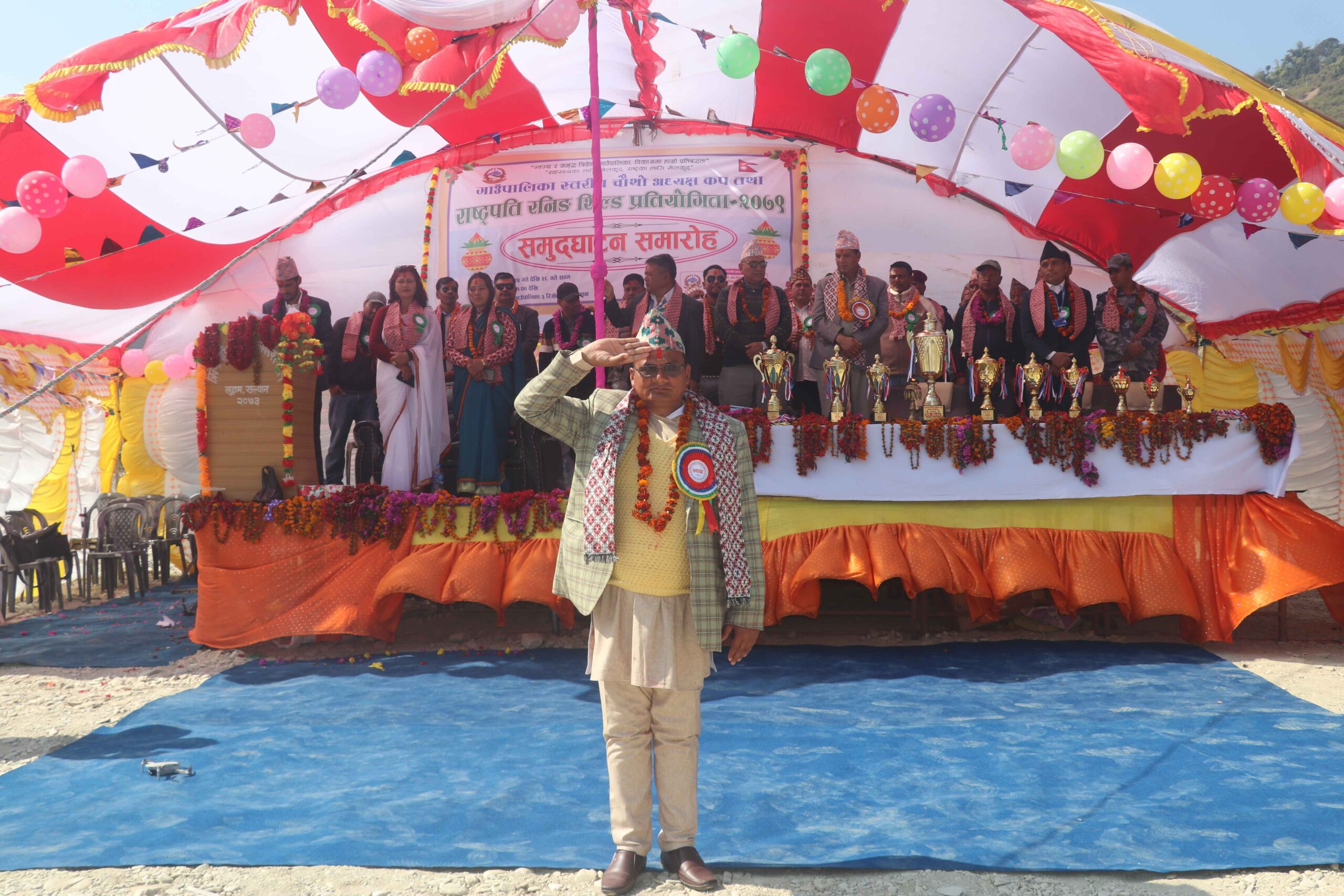 गाउँपालिका अध्यक्ष खिम बहादुर रावतको अध्यक्षतामा भएको कार्यक्रममा गाउँपालिकाका संस्थापक अध्यक्ष मान बहादुर डाँगी, प्रमुख जिल्ला अधिकारी कृष्णचन्द्र पौडेल, वडा नं. ५ का वडाअध्यक्ष बिमल रावत, वडा नं. ३ का वडाअध्यक्ष कर्णदेव डांगी, जिल्ला खेलकुद विकास समितीका अध्यक्ष खड्ग आचार्य, नेपाल पत्रकार महासंघ सल्यानका अध्यक्ष नविन पौडेल लगाएकाले शुभकामना मन्तव्य राखेका थिए ।