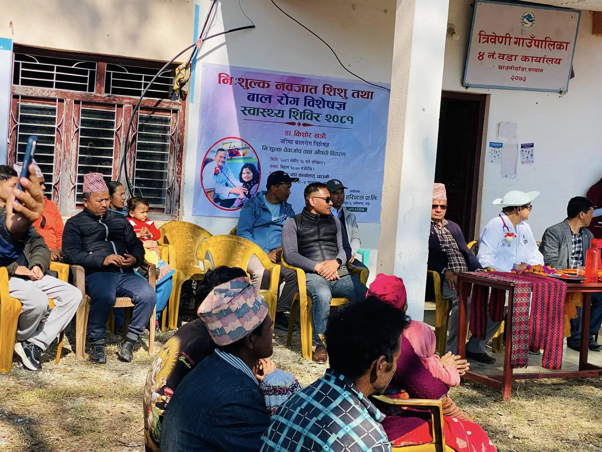 सल्यानको त्रिवेणी ४ फलाबाङमा निशुल्क नवजात शिशु तथा बालरोग विशेषज्ञ स्वास्थ्य शिविर सम्पन्न भएको छ । तुल्सी अस्पताल दाङको आयोजनामा भएको शिविरमा त्रिवेणी गाउँपालिकाका अध्यक्ष खिम बहादुर रावत ज्यूको प्रमुख आथित्यता, वडा अध्यक्ष छबिराज शर्मा ज्यूको अध्यक्षतामा उक्त शिविर सम्पन्न भएको हो । दोश्रो पटक १ दिने निःशुल्क बालरोग विशेषज्ञ स्वास्थ्य शिविर सञ्चालन गरी २ सय जना बाबालिकाहरूको स्वास्थ्य जाँच, उपचार तथा औषधी वितरण गरिएको तुल्सी अस्पताल प्रा.लि.का बरिष्ठ बाल रोग विशेषज्ञ डा. किशोर खत्रिले बताउनु भयो ।